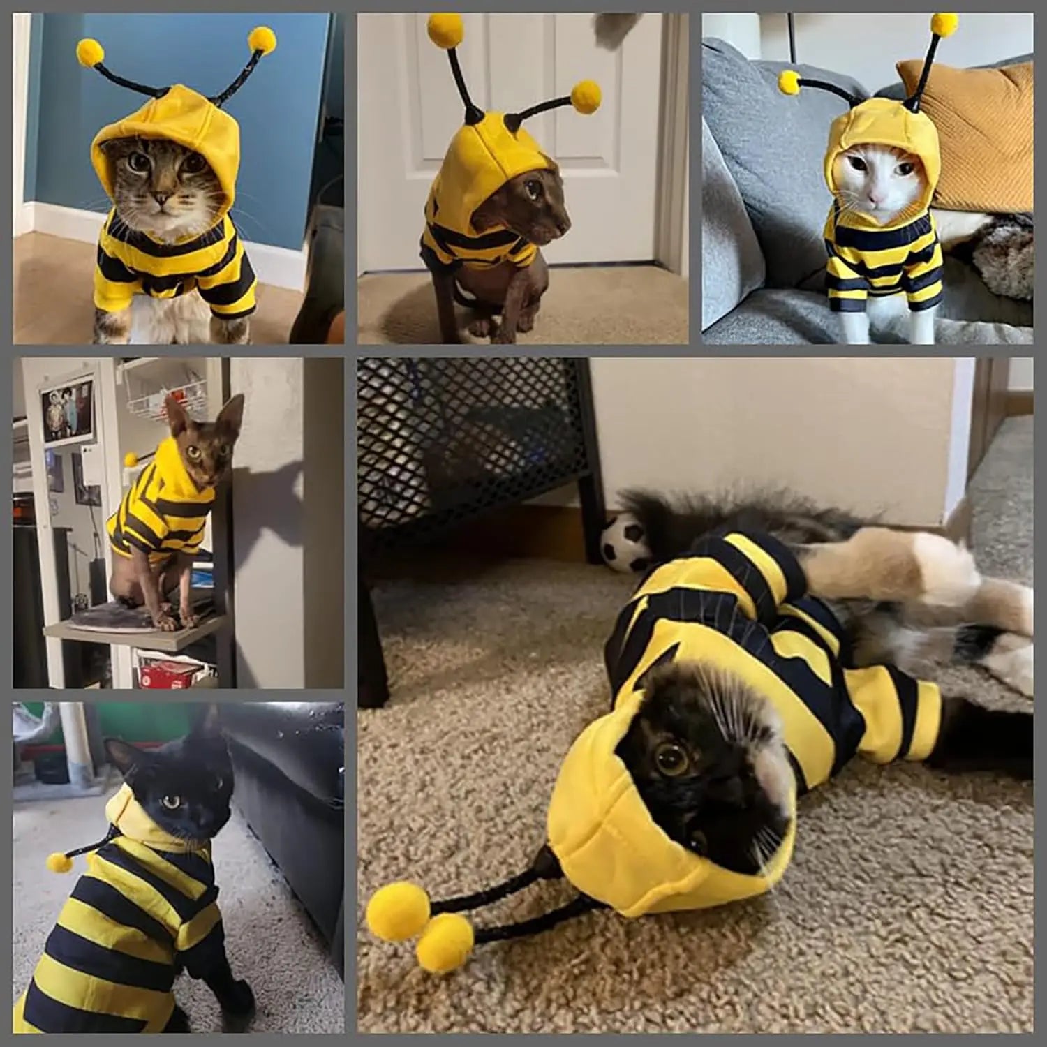 Pet Cat Bee Costume Hooded Funny Stripe Cat Hoodies for Cats and Small Dogs, Pet Easter Halloween Party Outift Cat Clothes